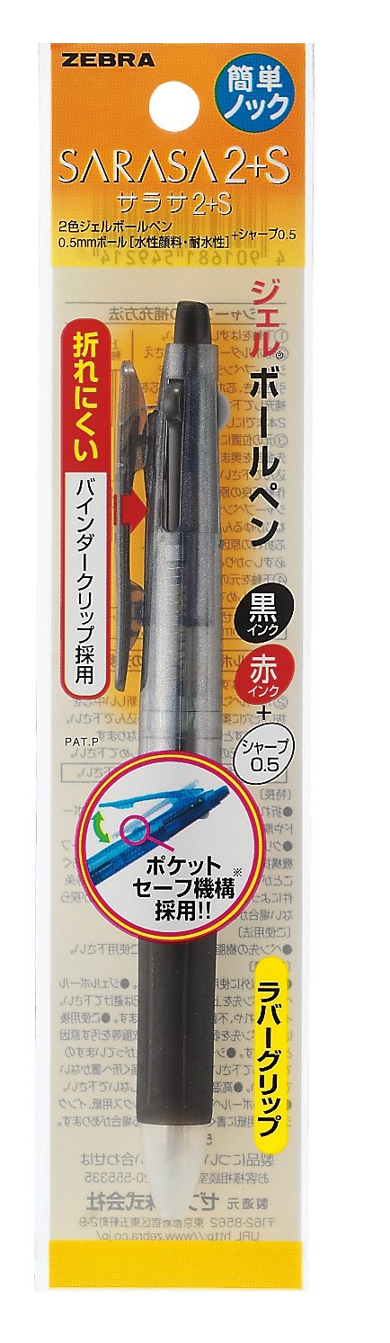 Zebra Multi Function Sarasa 2 and S Black/Red Ink Ballpoint Pen 0.5mm Mechanical Pencil Black Body