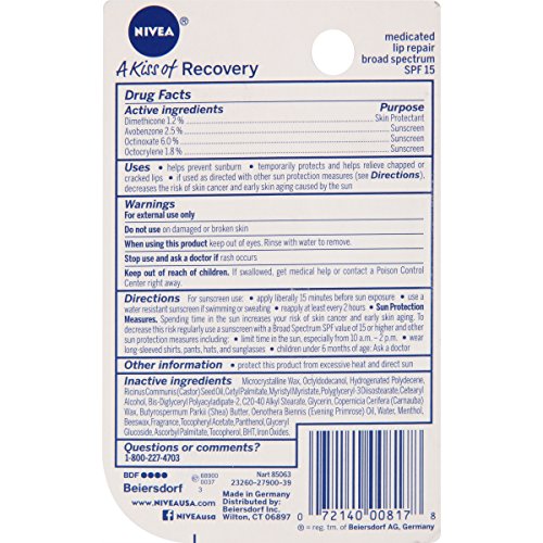 -. Title : NIVEA Kiss of Recovery Medicated Lip Care, .17 oz. (Pack of 6)