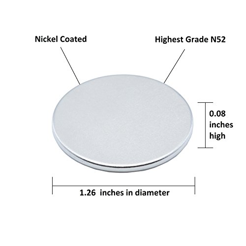 Super Magnet N52 Neodymium Rare Earth NdFeB Permanent Disc Magnets, 1.26”D X 0.08’’H, Set Of 12