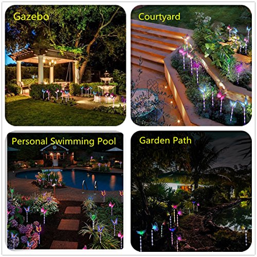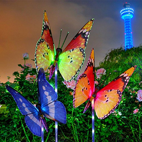- ★Easy Installation: No wiring or external electricity needed. Note: When you receive the LED butterfly lights, their wings are folded and please open the wings in accordance with the pictures of our listing. Wings are durable with the material fiber optic. Perfect as path lights and in-ground lights. Suitable for the Garden, Trees, Flowers, Flowerbed, Fence, Walkway, Courtyard Porch Balcony Flowerpot.