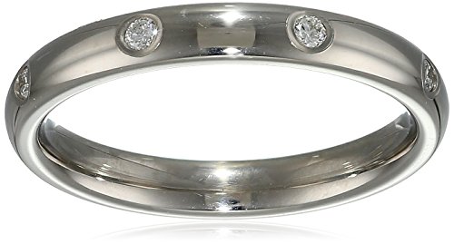 Punctuated with stunning white diamonds and constructed from high-polish white gold, the Comfort-Fit design of this wedding band ensures that she will be happy to wear it for a lifetime.