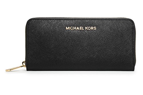 Michael Kors Jet Set Travel Zip Around Continental Saffiano Leather Wallet (Black)