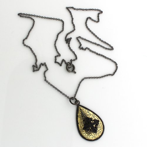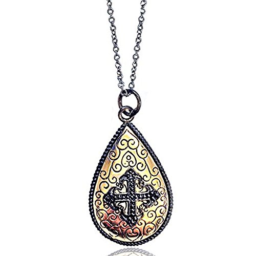 -. Binding : Jewelry -. Brand : ClearanceCo -. Color : Black/Gold -. Department : womens -. Feature : Vintage inspired look with Edwardian inspirations / Comes with 18" Black Rhodium plated thin cable link chain / Pendant drop at 31mm with the bail, and is 17mm wide / Cross Emblem is an Avis Cross - a cross adorned with lily petals at the ends / Free (US) Standard Shipping & Comes with Gift Box -. Model : CCN2011 -. MPN : CCN2011 -. PartNumber : CCN2011 -. ProductGroup : Jewelry -. ProductTypeName : FINENECKLACEBRACELETANKLET -. Title : Tudor Cross Emblem on Pear Shaped Black 14K Gold Plated Necklace, 18"