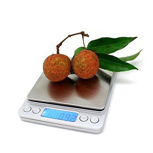 Power Button On/Off, Tare Function, Mode button for switching between measurements.Auto-off feature after 3 minutes of undisturbed use.Powered by two AAA batteries, which are INCLUDED. Constructed with a high-quality stainless steel platform, this digital kitchen scale is durable and easy to clean. This scale's compact size takes up minimal space on your counter-top. (Product Dimensions: 4" x 5" x 3/4". Platform Dimensions: 4"x4"),A vibrant blue back-lit LCD screen makes reading simple, even in low-lighting.Measurements displayed in either Standard or Metric: in 0.1gram/0.01ounce increments.The two accompanying plastic trays offer an additional level of ease, and less cleaning. Coastline 100% Satisfaction Guaranteed!