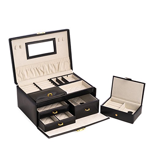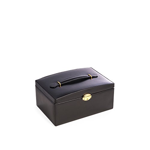Time Factory AJ-BB564BLK Leather 2 Level Jewelry Box, Black