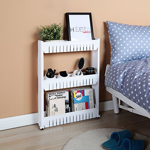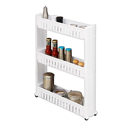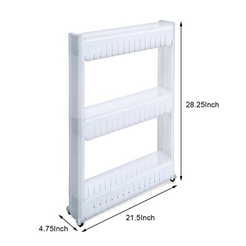 - [MultiPurpose Use] Make the full used of the narrow space. with 3 layes baskets can store lots of laundry supplies, kitchen groceries and home supplies and anything eles, save a lots space for you.