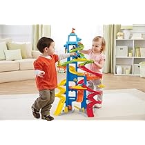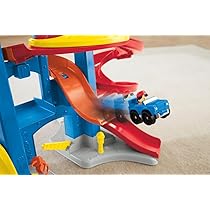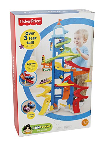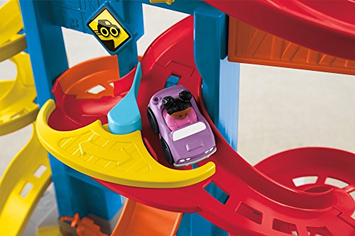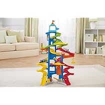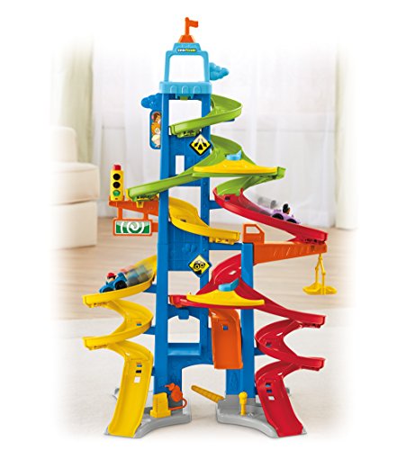 As tall as your pre-schooler, the Fisher-Price Little People City Skyway is 3 feet of towering thrills, chills and spills as Koby and Tessa zip and zoom, around and around, all the way down from the top. Your little speedster will love starting the action at the top, then watching to see which way the car switches throughout the play set. If he sends a car down the middle ramp, it’ll jump right off the end!