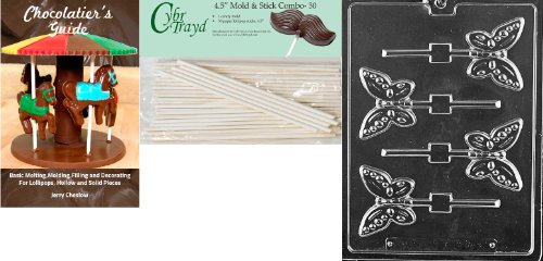 Cybrtrayd 45St50Bk-A134 'Butterfly Lolly' Animal Chocolate Candy Mold with 50 4.5-Inch Lollipop Sticks and Chocolatier's Guide