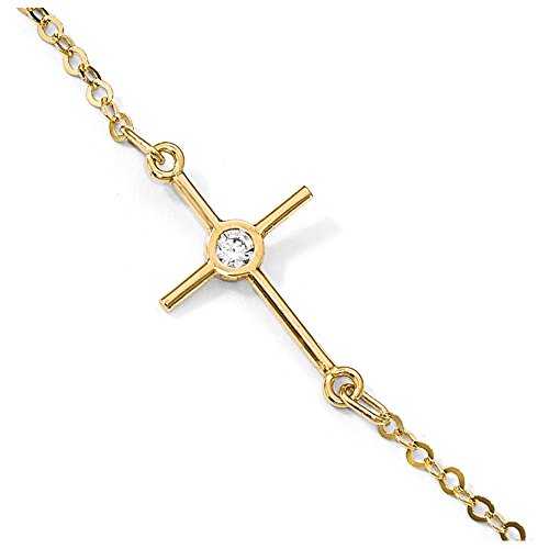 -. Title : Solid 14k Yellow Gold Polished CZ Cubic Zirconia Cross - with Secure Lobster Lock Clasp (12.3mm)