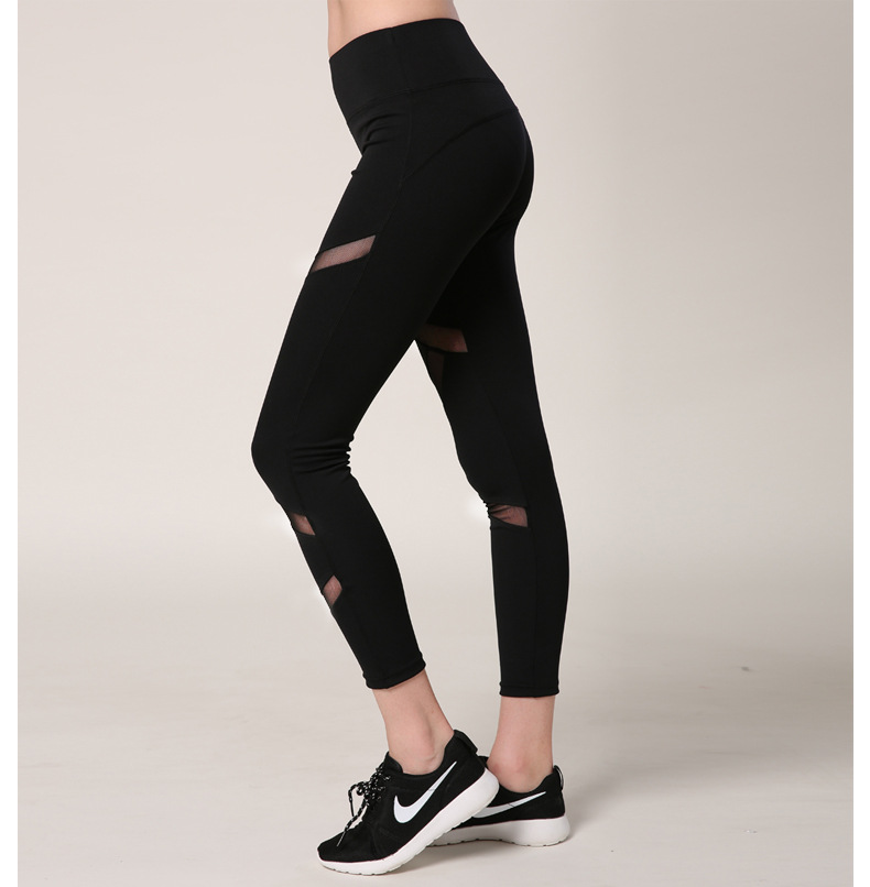Women Yoga Fitness Sexy Pants Mesh Patchwork Slim High Elastic Leggings Gym Running Sports Capris Quick Dry Breathable Trousers