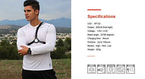 1.Specifications: Front light with high power XP-G2 white LED (200LM) for illumination, and rear light with 8 red LEDs for warning.