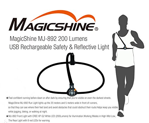 ★Feel confident running before dawn or after dark by ensuring that you're visible on even the darkest streets, MagicShine MJ-892 Run Light lights up the 20 meters and 5 meters wide in front of runners, so that they can see where their feet land and avoid obstacles that could obstruct their route.Helps keep you visible while jogging, biking, or walking at night.