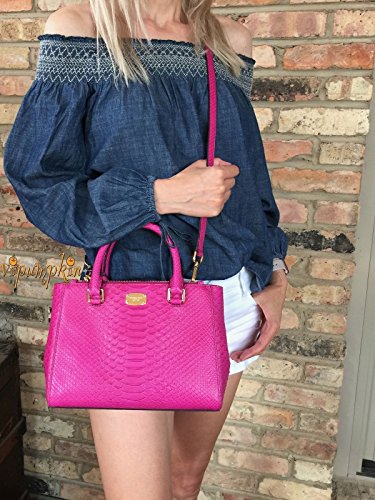Michael Kors Kellen Embossed Leather Extra Small Satchel Crossbody Fuschia
