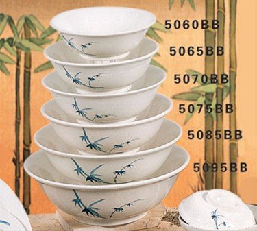 Thunder Group 12-Pack Blue Bamboo Collection Rimless Bowl, 11-Inch Diameter, White