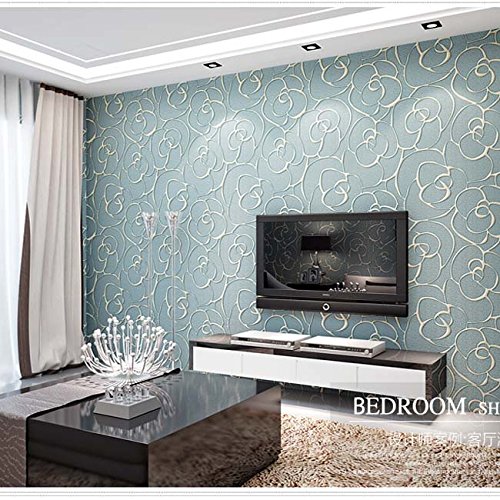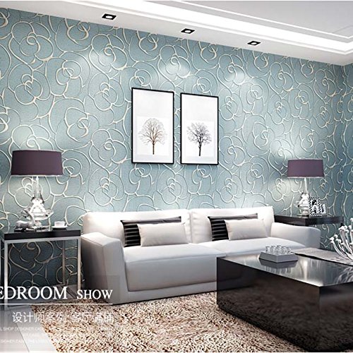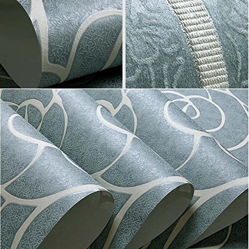 -. Title : QIHANG Modern Minimalist Embossed 3D Rose Flower Non-woven Wallpaper Light Blue Color 0.53m10m=5.3㎡