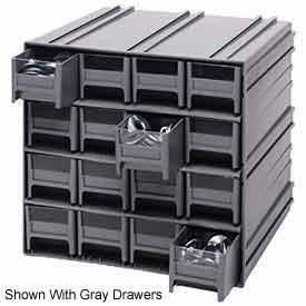 Quantum QIC-161RD Interlocking Gray Storage Cabinet with 16 Red Drawers, 11.38-Inch by 11-3/4-Inch by 11-Inch
