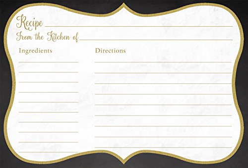 Recipe Cards, Chalkboard, Gold, Black, Bridal Shower, Housewarming, Gift, Double Sided, with Lines, Size, 4 x 6, 24 Printed Cards, Chalkboard