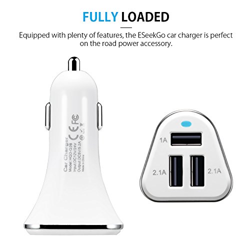 ESEEKGO 3 PORT CAR CHARGER ADVANTAGE: you can charge your tablet and cellphone at the same time,and the other port can share with your friends,family and lovers to use it.