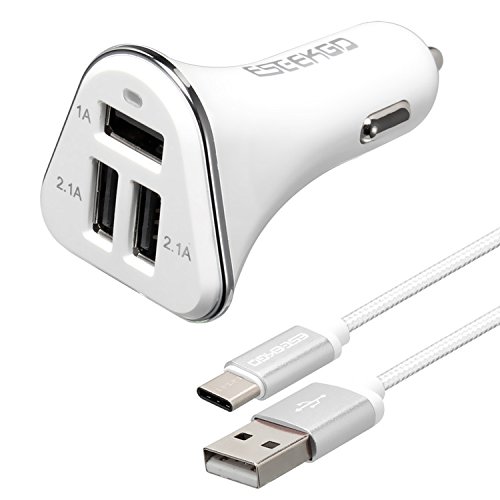 Car Charger for Samsung S8,ESEEKGO 5.2A/26W 3 Port Car Adapter with Type C Cable for LG G5 G6 V20 Huawei P9 P10 (White)