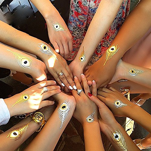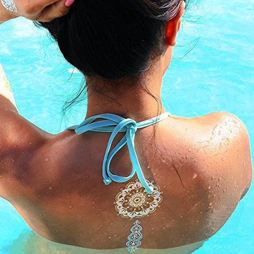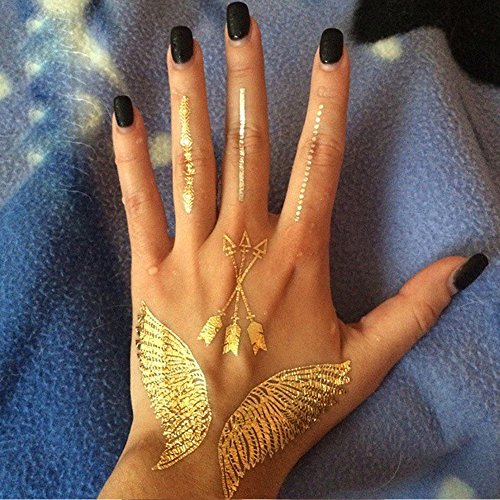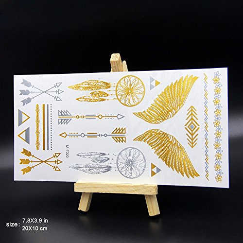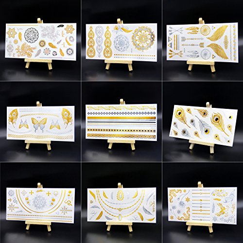 070FC 9-Sheet Gold Silver Metallic Tattoo Flash Waterproof Temporary Tattoos Sticker Fake Tattoo (Gold)