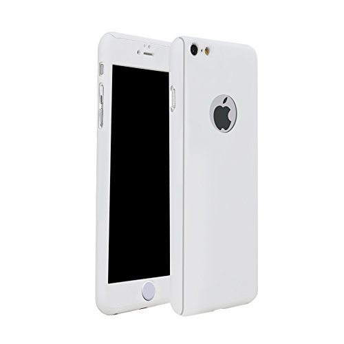 iKNOWTECH Luxury Full Body Protect Hard Slim Case Cover With Tempered Glass For iPhone 6 5.5" Plus (White)