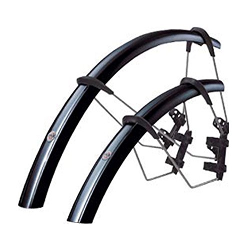 Studio : SKS Publisher : SKS Binding : Misc. Product Description We embrace the concept of owning a backup bike. Call it what you will -- a trainer bike, a rain bike, a beater bike, whatever. But the reality of things is this: When you're in real training mode you're going to ride outside rain or shine, and each day closer you get to your "A" race, the more averse you'll be to riding any other bike than the exact bike you'll be racing. The harmony of man and machine is elemental, and the experience of owning a race bike is no different from the experience of having a new, really hot girlfriend -- the "getting to know you" part of the process is a delight, then once that stage is over you take immense comfort in the familiarity of things. Our observation is hardly paradigm-shattering. After all, who doesn't want to ride their favorite bike? And who wants to take time away from riding their favorite bike and instead devote time to cleaning it? Hence the SKS Race Blade fenders. They are terribly un-American but likewise very Euro in purpose: When pros train in Belgium in the Spring they slap fenders on their race bikes. Why? Because rain or shine the hard-men of Belgium are putting in their daily 6 hours, and they don't want their backsides and legs soaked to the bone 10 minutes into the ride. The Race Blade keeps you dry from road spray, and it goes a long way to prevent your bike from getting waterlogged and otherwise trashed.We dig on the Race Blade for one central reason: They use a rubber grommet system to attach to your bike. Think of it as being like a quick release system. It literally takes 10 seconds of tool-free time to put them on and take them off. They stay firmly in place, but they won't mar your frame -- be it a steel or alloy frame with glossy paint, or a carbon frame with a lush clear coat. Take these on and off for season after season and your bike won't look a any different for it. In addition, they're light and nicely aerodynamic. The Race Blade fits 700c wheels equipped with tires ranging in size from 18c-23c. 0