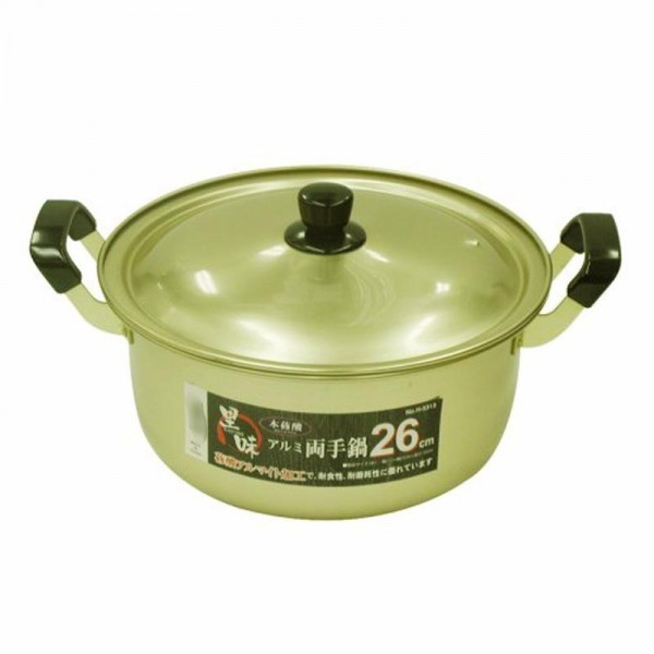 蓚酸アルマイト加工で、耐食性に優れた両手鍋26cmです。
