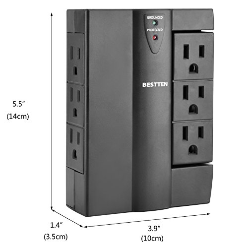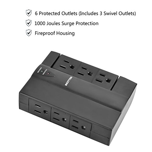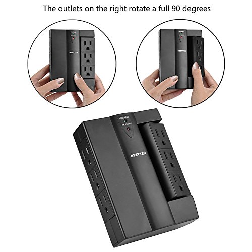 6 protected outlets including 1 set of 3 rotatable outlets allow for convenient angles to plug equipment into without interfering with each other