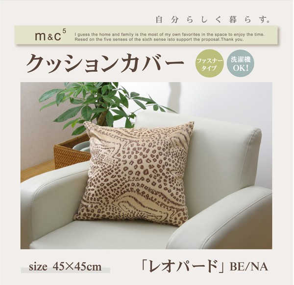 【商品名】アニマル柄 クッションカバー 『レオパード CカバーLS』 ナチュラル 45×45cm