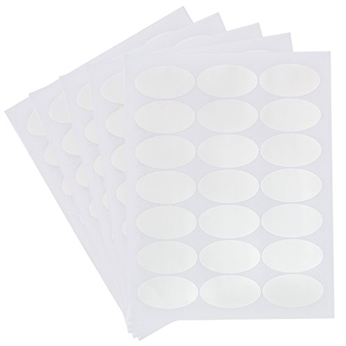 -. Title : White Oval Waterproof Essential Oil Labels for Bottles & Jars – 2.5" x 1.375" oval, 5 Sheets, 105 Labels