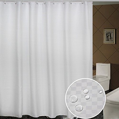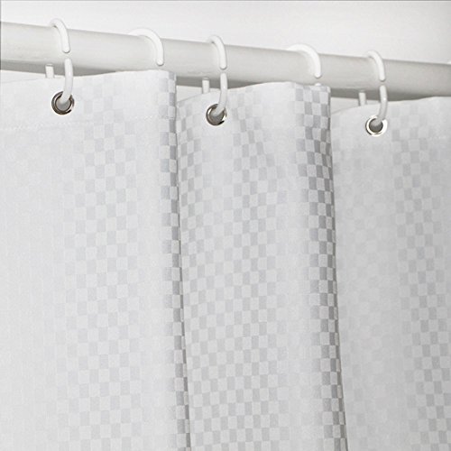 Eforcurtain Decorative Plaid Checks Shower Curtains Hotel Water Proof and Mildew Free, Heavy Duty Bath Curtains Soft Microfiber Set with Plastic Curtain Rings, 72 x 78 Inches Extra Long White