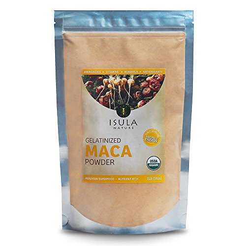 Maca Powder 16 Ounces zip bag, Organic USDA Certified, Gelatinized for enhanced absorption, from Peruvian Raw Maca Root, Non-GMO, by Isula Nature