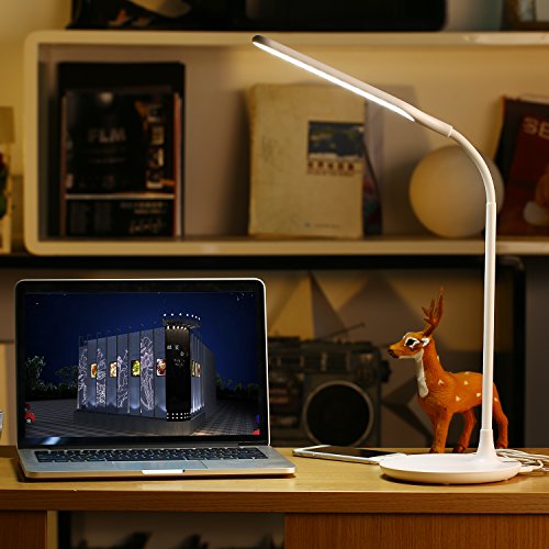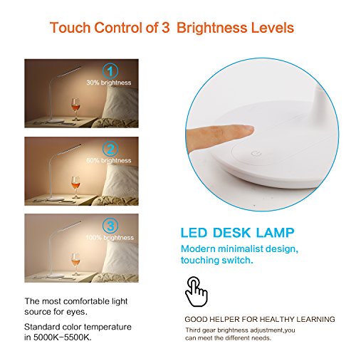 LED Desk Lamp, JIALEKANG Eye-caring Table Lamp, Dimmable Office Lamp with 5V 2A USB Port,6W, 3 Brightness Levels, Flexible Gooseneck, Flick-free, Touch Control (White)