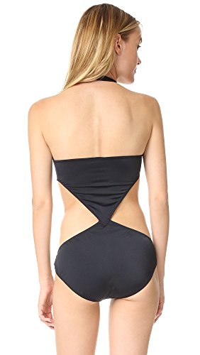 Product DescriptionThis halter style swimsuit features diamond-shaped side cut-outs for a dynamic beach ready look0