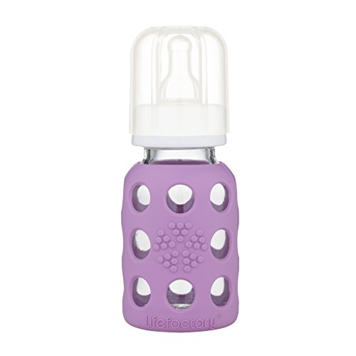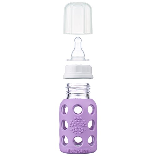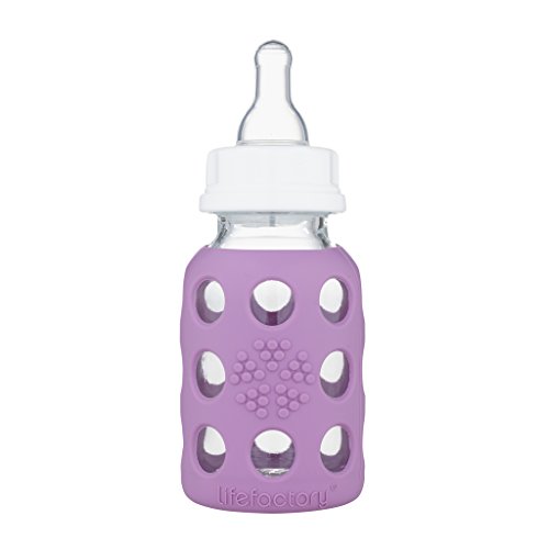Lifefactory 4-Ounce BPA-Free Glass Baby Bottle with Protective Silicone Sleeve and Stage 1 Nipple, Lavender