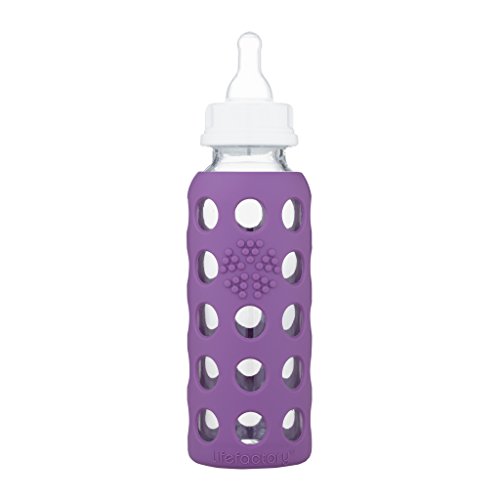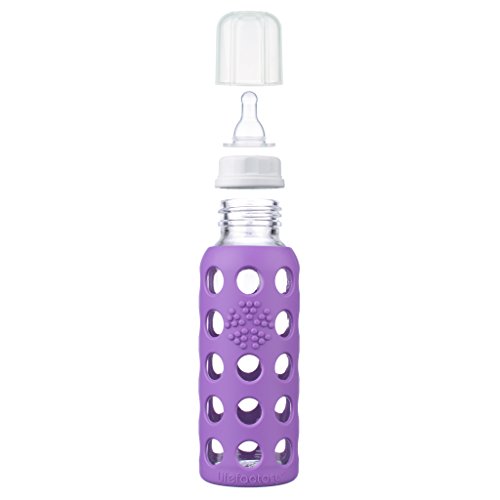 Lifefactory 9-Ounce BPA-Free Glass Baby Bottle with Protective Silicone Sleeve and Stage 2 Nipple, Grape
