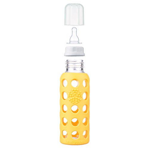 Lifefactory 9-Ounce BPA-Free Glass Baby Bottle with Protective Silicone Sleeve and Stage 2 Nipple, Mango