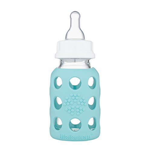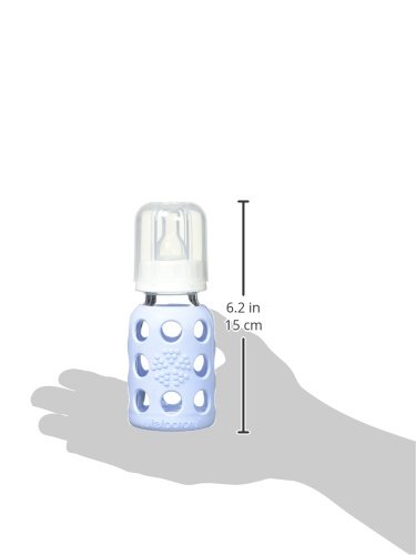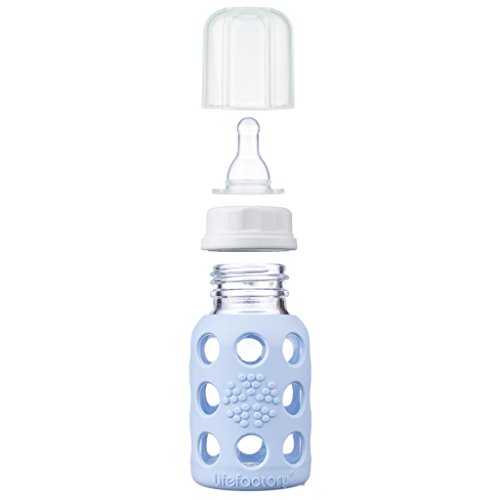 Lifefactory 4-Ounce BPA-Free Glass Baby Bottle with Protective Silicone Sleeve and Stage 1 Nipple, Sky Blue