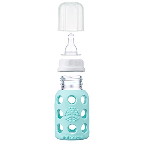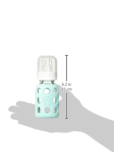 Lifefactory 4-Ounce BPA-Free Glass Baby Bottle with Protective Silicone Sleeve and Stage 1 Nipple, Mint