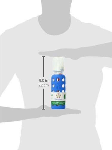 Lifefactory 9-Ounce BPA-Free Glass Baby Bottle with Protective Silicone Sleeve and Stage 2 Nipple, Blueberry