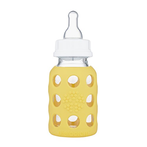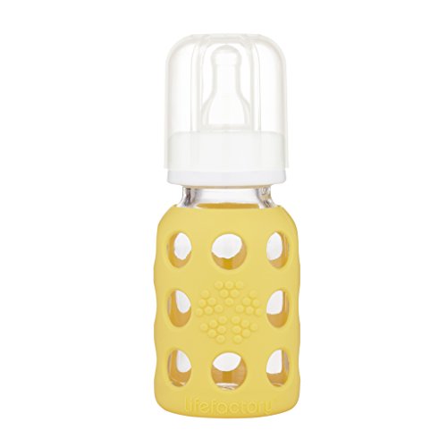 Lifefactory 4-Ounce BPA-Free Glass Baby Bottle with Protective Silicone Sleeve and Stage 1 Nipple, Banana