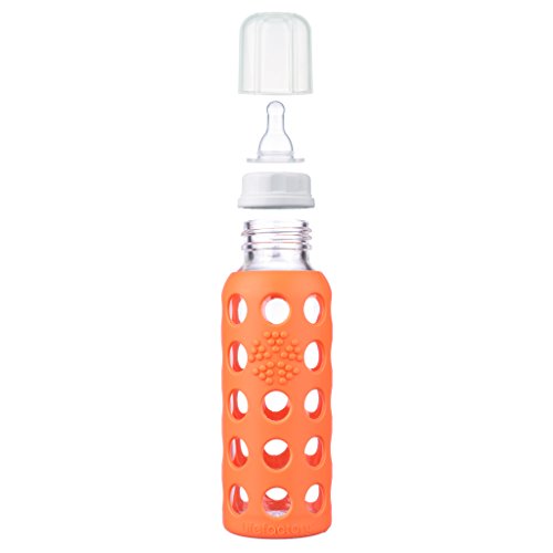 Lifefactory 9-Ounce BPA-Free Glass Baby Bottle with Protective Silicone Sleeve and Stage 2 Nipple, Papaya