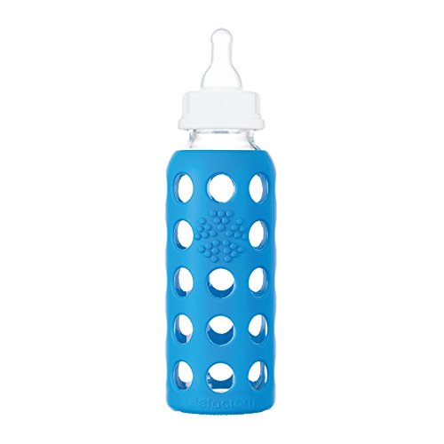 Lifefactory 9-Ounce BPA-Free Glass Baby Bottle with Protective Silicone Sleeve and Stage 2 Nipple, Ocean