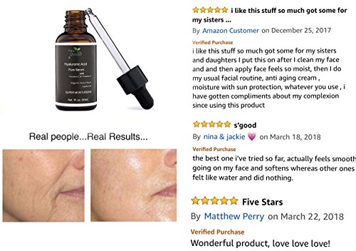 -. Feature : HYALURONIC ACID Serum with Vitamin C & E - ORGANIC Face Serum ANTI AGING, ANTI WRINKLE Serum designed to make your skin look younger, smoother, silkier and petal-soft feeling. / PURE, NATURAL and 72% Organic Hyaluronic Acid - REGENERATING Serum Daily Moisturizer & Night Moisturizer - SCIENTIFICALLY PROVEN for its Power of SKIN REGENERATION and SCAR HEALING, great for ACNE TREATMENT and acne scars. Are you ready to look naturally beautiful, confident and attractive? / Vitamin C Serum and Hyaluronic Acid is a great combination for anti aging effects - Acts like a Sponge Retaining Vast Amounts of Water. Face Lift - All natural ingredients, rich in antioxidants that will get your healthy skin back. / Hyaluronic Acid Face Moisturizer is a NATURAL MOISTURIZER, WRINKLE REMOVER that Provides the best VITAMINS for face. Give yourself the fresh look, dense skin and healthy natural glow that comes from within! / Petra Organics Hyaluronic Acid Serum is PURE, NATURAL, ORGANIC, SAFE for all Skin Types including Sensitive Skin - Absorbs Quickly leaving YOUR SKIN SILKY SOFT and SMOOTH. Complete 100% Results or Money Back Guaranteed! No questions asked
