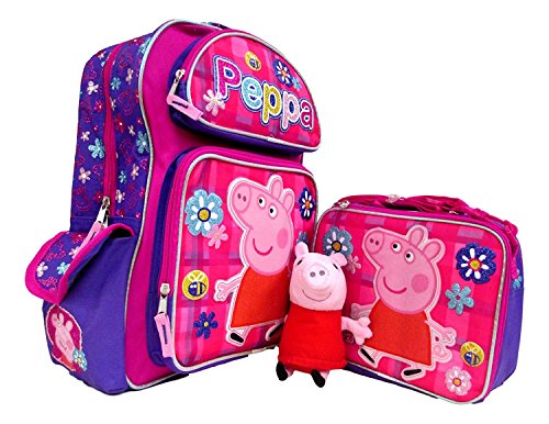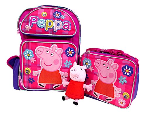 Peppa Pig Large 16" Backpack Book Bag, Lunch Box & Plush Doll Set by Bag2School