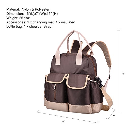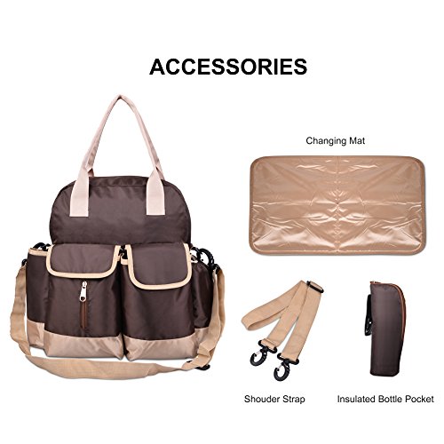 Diaper Bag-Waterproof backpack with Changing Pad,Shoulder Straps and Thermal Insulated Pocket Brown