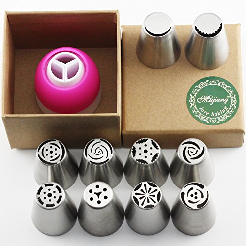 Mujiang Small Size Stainless Steel Russian Icing Piping Tips Baking Set Of 11