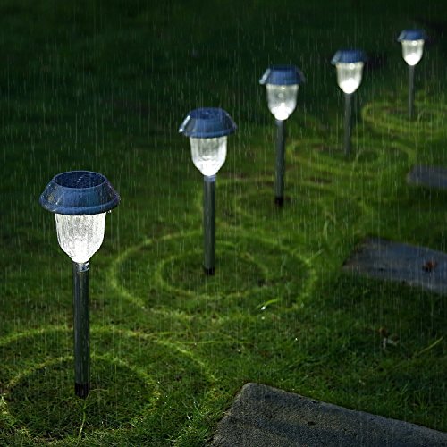 - Stainless Steel Lamp. Stainless steel and rugged ABS plastic construction makes the light not only a beautiful outdoor landscape decoration but also more durable and weather-resistant lighting source. Firm waterproof stake ensures the garden lights withstand sunny days, rainy nights, and small snowy days, and last long life for use. Ideal for pathway, garden, walkway, etc.