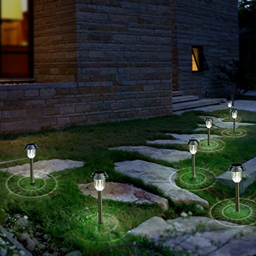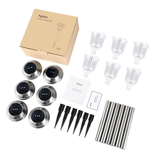 Solar Garden Lights Outdoor Landscape Pathway Lights Powered by SunPower Solar Panels Aglaia 6 Pack (Stainless Steel)