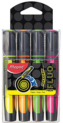 Maped Fluo Peps Max Highlighters, Assorted Colors, Pack of 4 (742947)